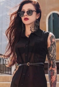 美女人物纹身图案 女生手臂上黑灰色的美女人物纹身图片