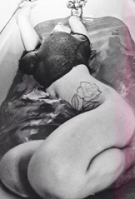 纹身玫瑰花 女生小臂上黑灰色的玫瑰花纹身图片