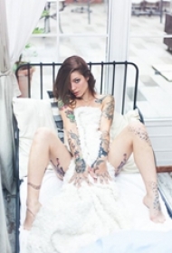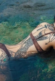蝴蝶结纹身图 女生大腿上彩色的蝴蝶结纹身图片