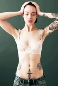 花朵纹身 女生侧腰上花朵和匕首纹身图片