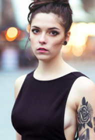 玫瑰小清新纹身 女生手臂上英文和玫瑰花纹身图片