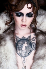 美女手臂上黑色女孩麋鹿角纹身素描技巧点刺纹身图片
