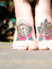 女性小腿脚背上漂亮的孔雀羽纹身图案