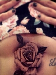 美女胸部尽情绽放的花卉与灯蝴蝶纹身