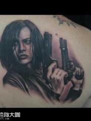 明星欧阳靖后肩oldschool风格美女肖像纹身