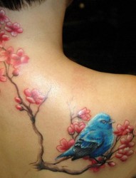 美女背部小鸟纹身