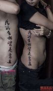 个性情侣腰部汉字名言纹身作品