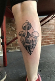 植物纹身 男生小腿上菱形和蘑菇纹身图片