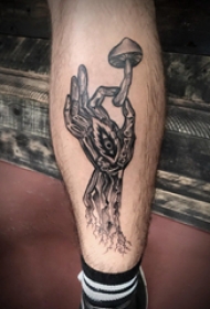 欧美小腿纹身 男生小腿上手部和蘑菇纹身图片
