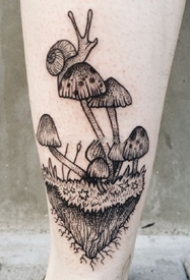 欧美小腿纹身 男生小腿上蘑菇和眼睛纹身图片