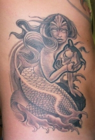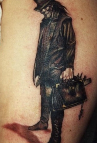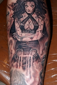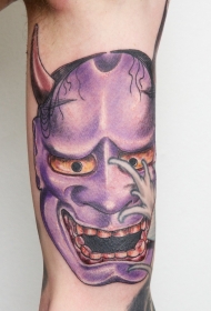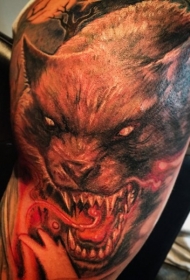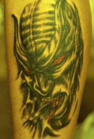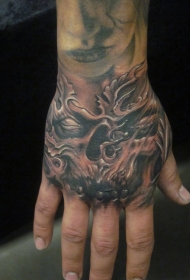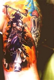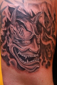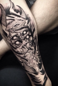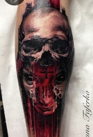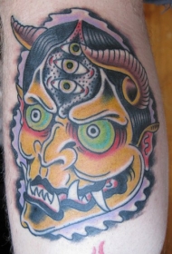彩色恐怖风格血腥恶魔与骷髅纹身图案