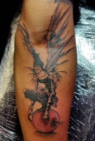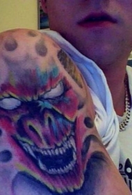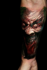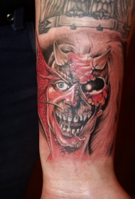 手臂彩色恐怖风格魔鬼小丑脸纹身图案