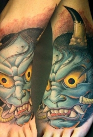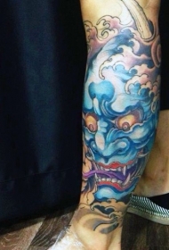 小腿五彩恶魔般若纹身图案