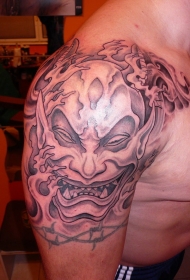 肩部亚洲风格的恶魔纹身图案