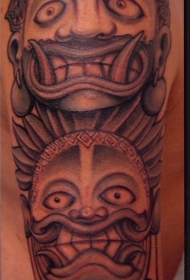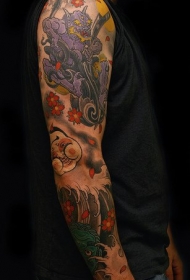 多彩亚洲主题恶魔彩绘花臂纹身图案