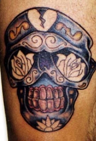 彩色骷髅和花朵纹身图案