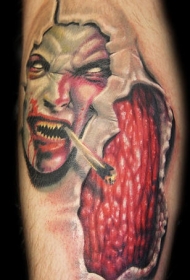 吸烟恶魔和皮肤撕裂纹身图案