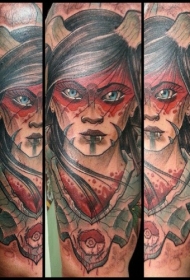 彩色大臂恶魔女人纹身图案