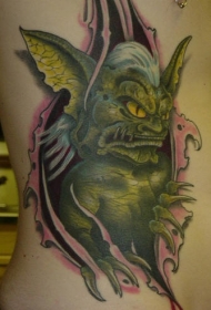 绿色恶魔皮肤撕裂纹身图案