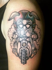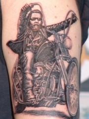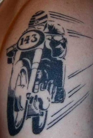 大臂黑灰摩托车骑手纹身图案