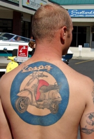 背部摩托车与蓝色圆圈纹身图案