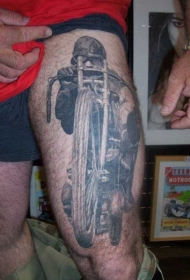 大腿上的摩托车概念纹身图案