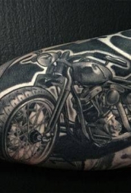 手臂黑色的摩托车纹身图案