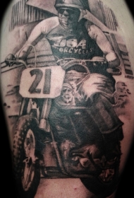 侧肋赛车手和摩托车纹身图案