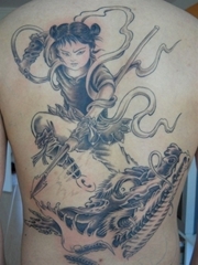 霸气男子背部哪吒驾龙纹身图片