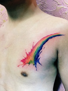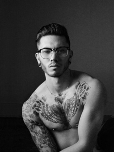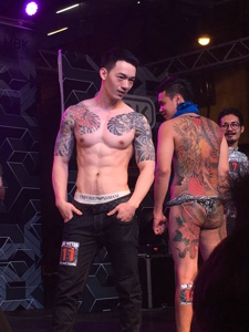 展台上的小鲜肉展示自己帅气的双半甲纹身
