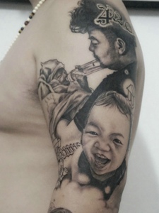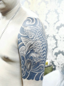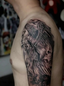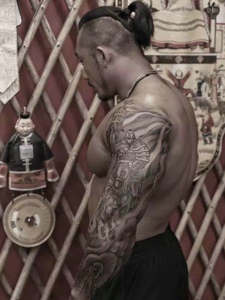 肌肉男帅气霸道的半甲纹身完美无瑕