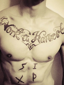 八块肌肉男胸前帅气的英文纹身图片