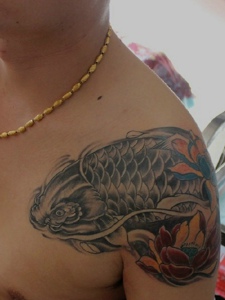 土豪男士大臂富贵鲤鱼纹身图片