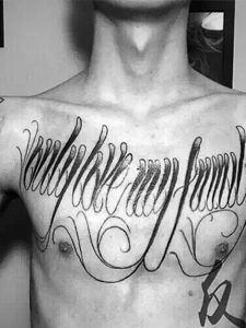 男士胸前好看的花体英文纹身图片