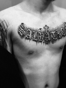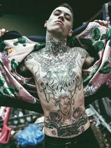 欧美俊男洒满整个胸前的纹身图案