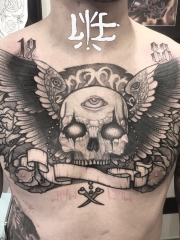 创意骨骼纹身图_10张男性黑灰点刺创意骨骼纹身图案作品