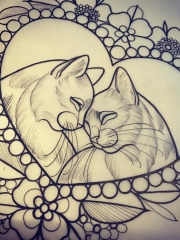 new school鸟蝴蝶爱心小清新纹身图案手稿