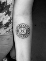 手臂弹钢琴的男士与跳芭蕾的女士黑白纹身