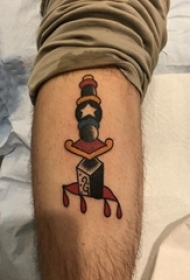 欧美匕首纹身 男生小腿上匕首纹身图案