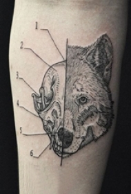 欧美拼接纹身 女生后背上拼接的狼头纹身图片
