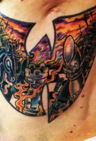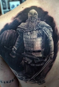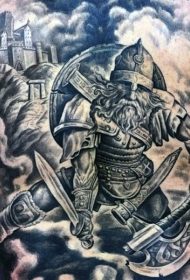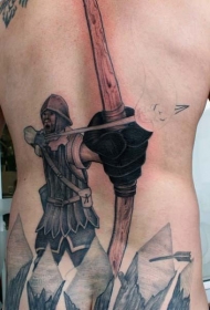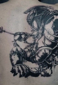 背部卡通风格彩色的中世纪幻想战士纹身图案
