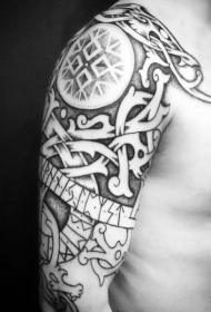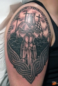 大臂华丽的黑白中世纪骑士凯尔特人纹身图案