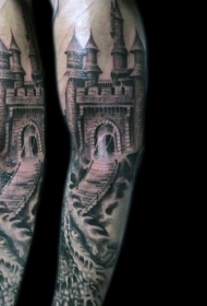 非常漂亮的彩绘和中世纪大城堡纹身图案