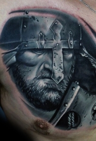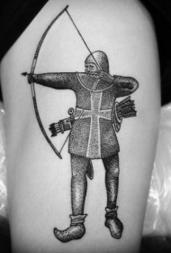 小腿old school黑色中世纪女骑士肖像纹身图案