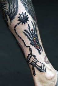 腿部old school欧美彩绘甲虫和武器纹身图案