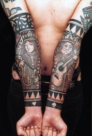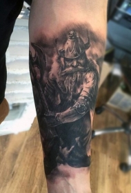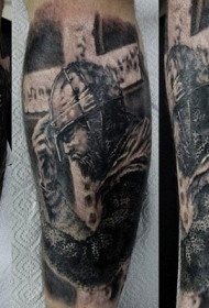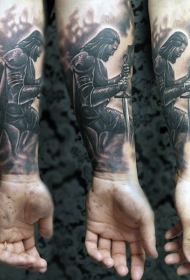 小臂精致的黑色祈祷中世纪骑士纹身图案