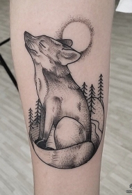 大臂欧美黑灰猫头鹰月亮纹身图案