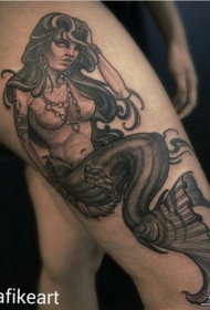 大臂欧美黑灰邪恶美人鱼纹身图案