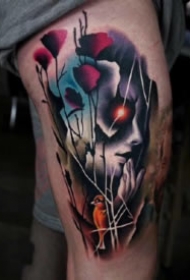 欧美的9款大腿彩色写实女郎纹身作品图片