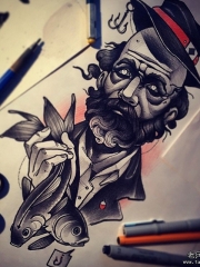 欧美暗黑系男士鱼纹身图案手稿